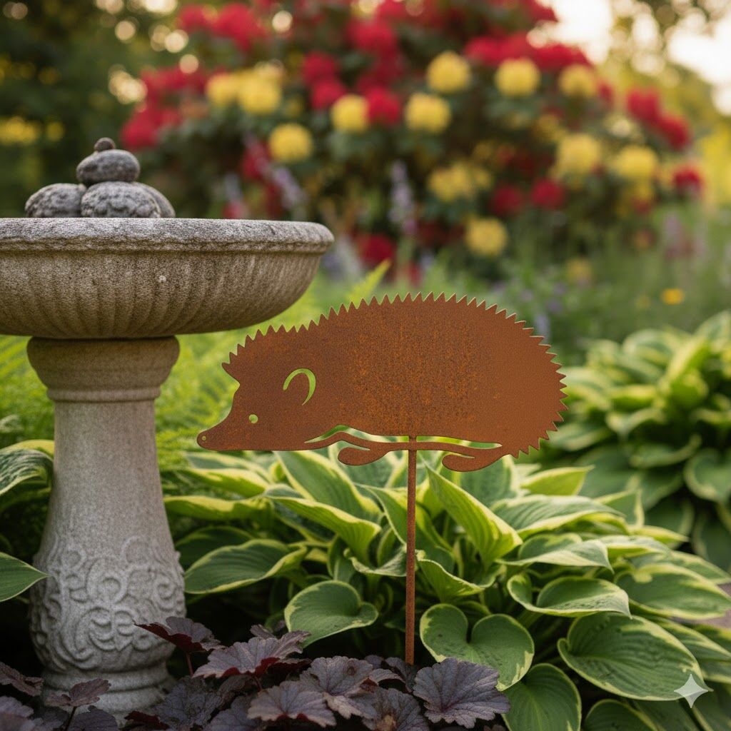 Bring delightful charm and a touch of the wild to your landscape with this adorable metal hedgehog garden stake. Crafted to provide a rustic, natural look, this animal silhouette features a beautiful rusty patina that blends seamlessly into any garden, lawn, or planter.