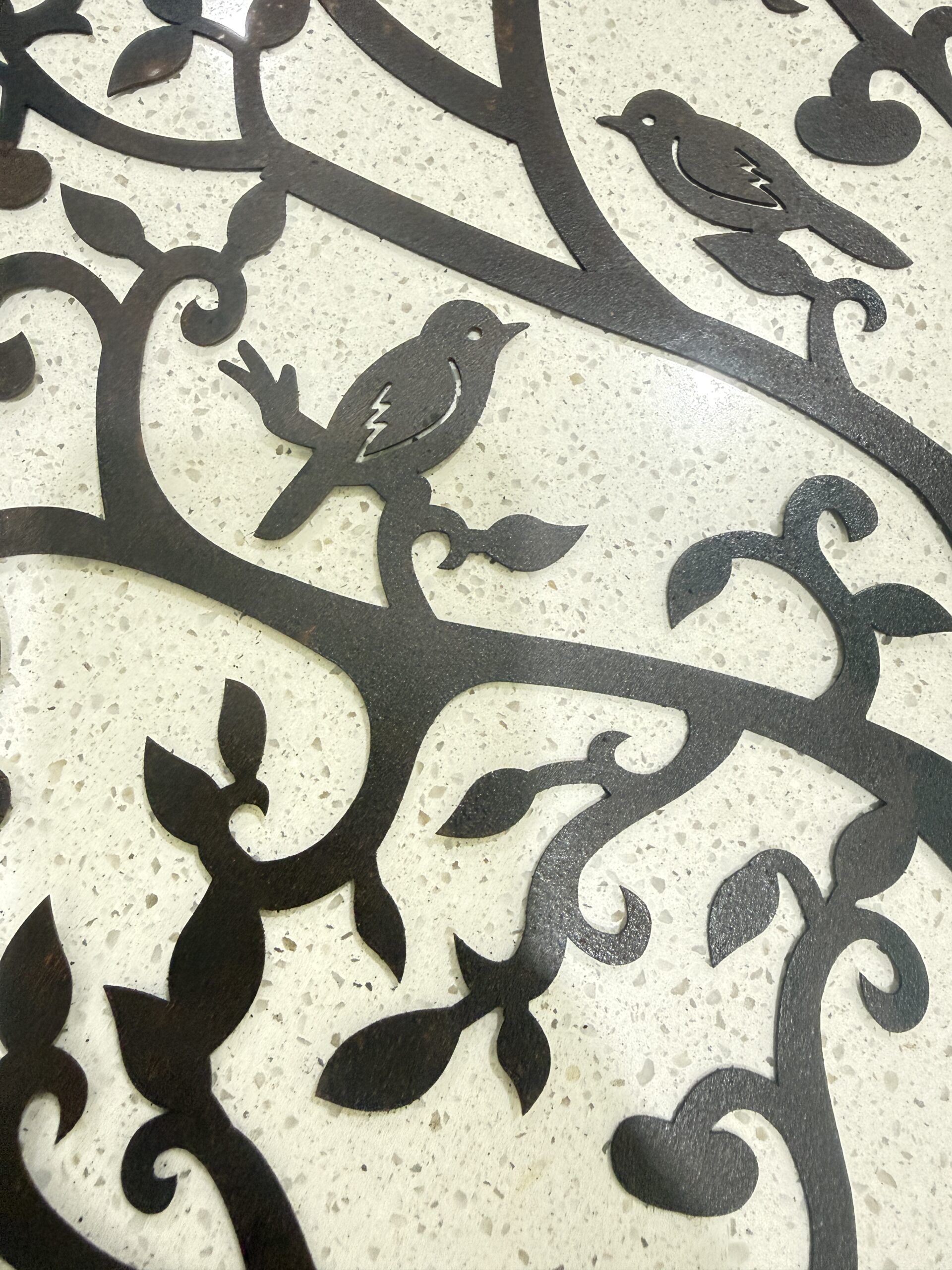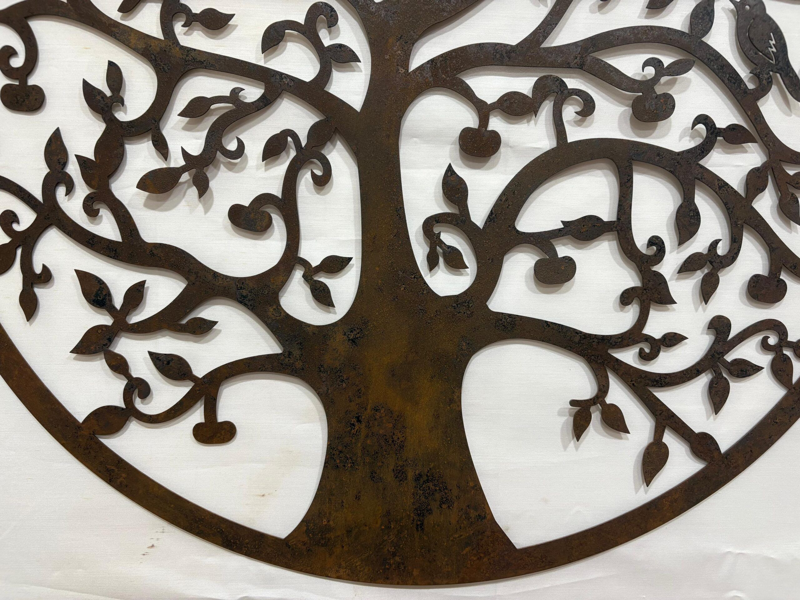 Embrace the natural beauty and artistic expression with our Tree of Life Metal Wall Art, a captivating large-scale sculpture that serves as a timeless piece for any space. Crafted with meticulous attention to detail, this rustic round piece measures 60 cm in diameter and features a rich brown, unpolished finish that enhances its country-style charm.